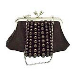 Bolsa de Festa em Tecido de Cetim com Detalhes em Pérolas Café