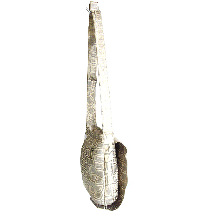 Bolsa em Couro Croco Trapezio Prata, com porta celular, porta documento em zíper e com divisória interna em zíper.