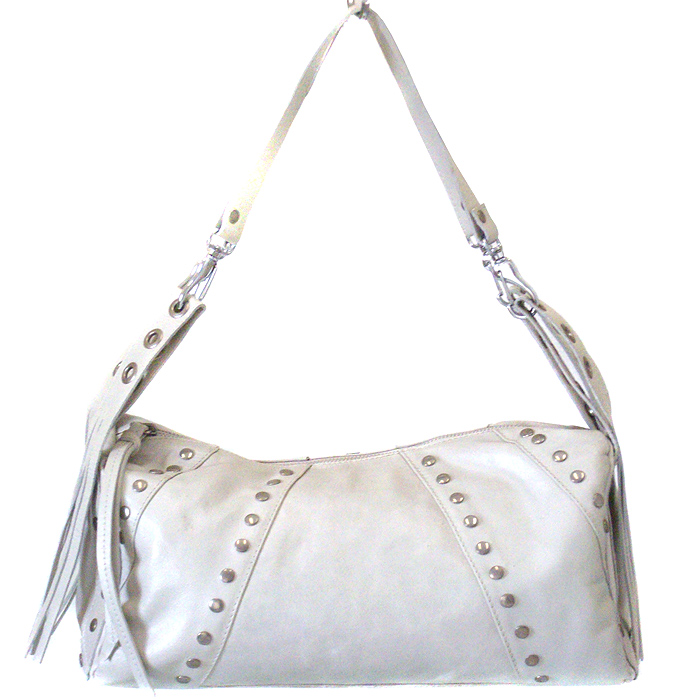 Bolsa em Couro Off White, cor gelo, moderna, ideal para mulheres inovadoras.