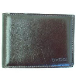 Carteira em Couro Oxddi com 1 porta cheque, 1 porta notas, 6 porta cartões e 4 porta documentos de plástico.
