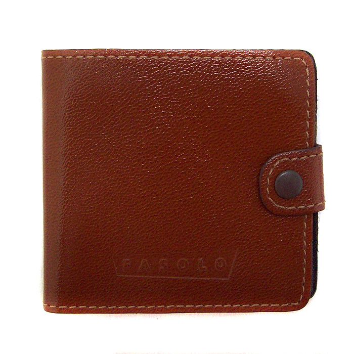 Porta Moeda em Couro Afro Fasolo com Fechamento em Botão de Pressão Mogno.